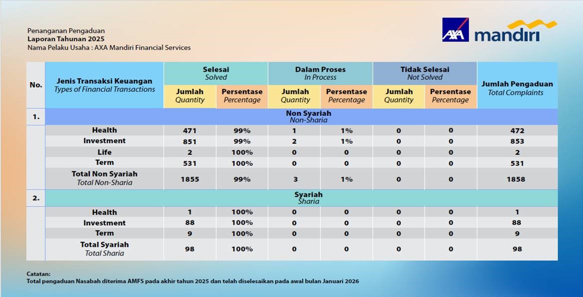 Publikasi Penanganan Keluhan Nasabah AXA Mandiri Periode Januari-Desember 2025