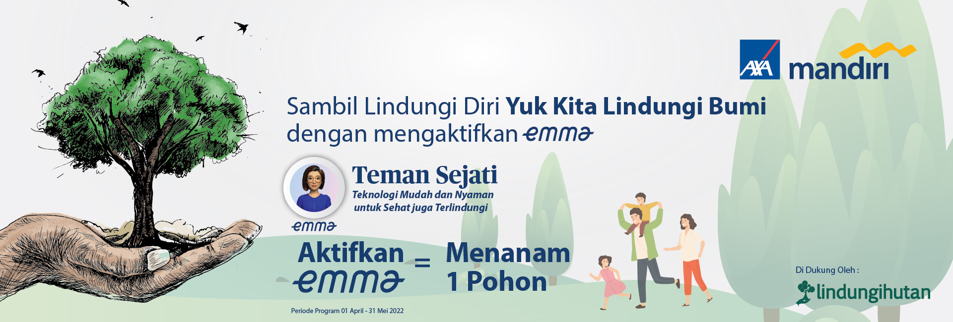“Perubahan iklim merupakan salah satu isu yang mengancam kita semua dan berpotensi berdampak buruk di masa depan. Kami mengajak nasabah untuk ikut serta dalam melindungi lingkungan hidup dengan menanam pohon bakau cukup dengan melakukan aktivasi layanan Emma. Kami harap hal ini dapat berkontribusi dalam melindungi masa depan kita semua dari dampak perubahan iklim, sekaligus memberikan kemudahan bagi nasabah untuk mendapatkan layanan digital guna membantu melindungi kesehatan diri dan keluarga,” ujar Presiden Direktur AXA Mandiri Financial Services, Handojo G. Kusuma.