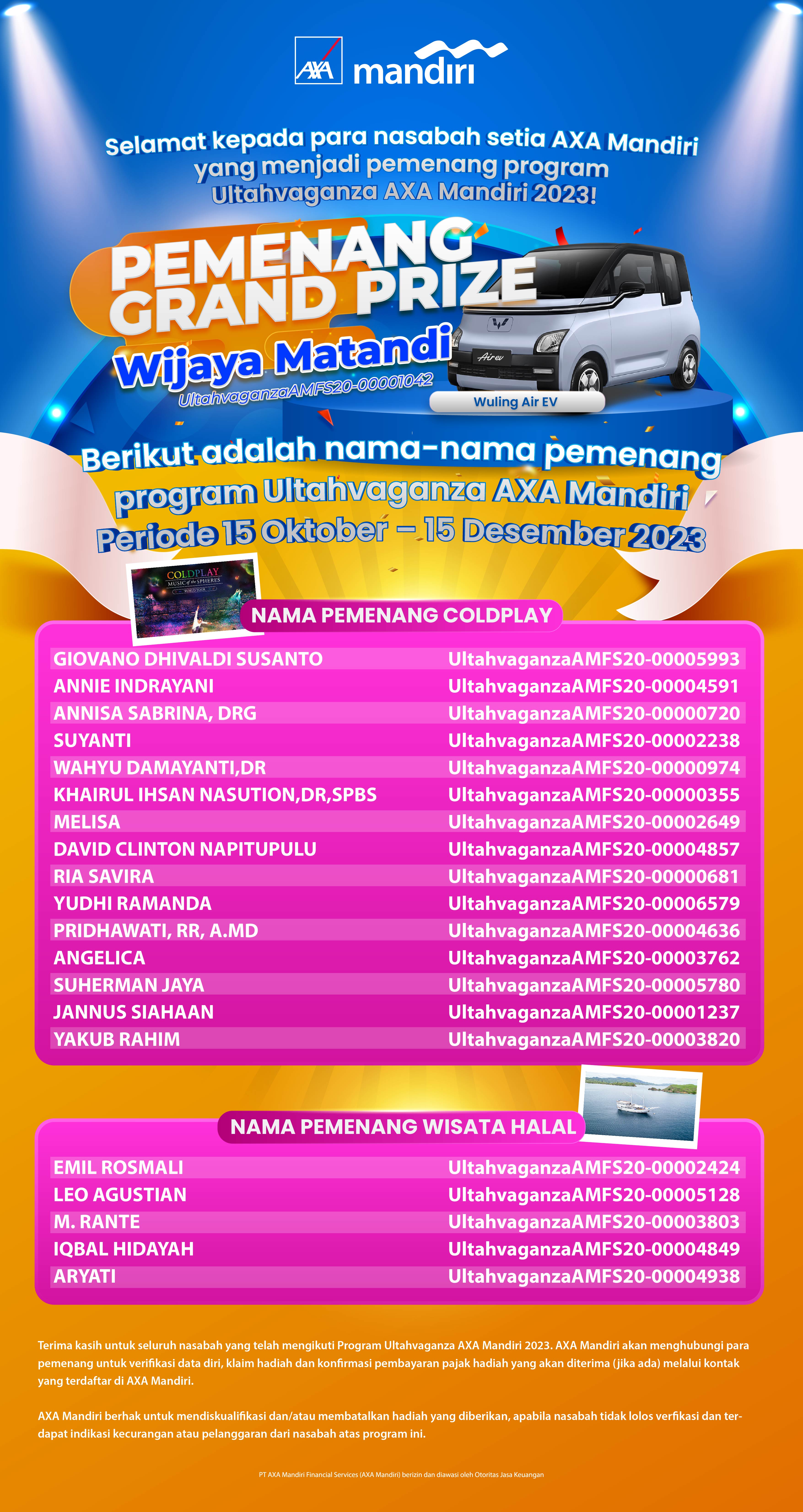 Pengumuman Pemenang Ultahvaganza AXA Mandiri 2023