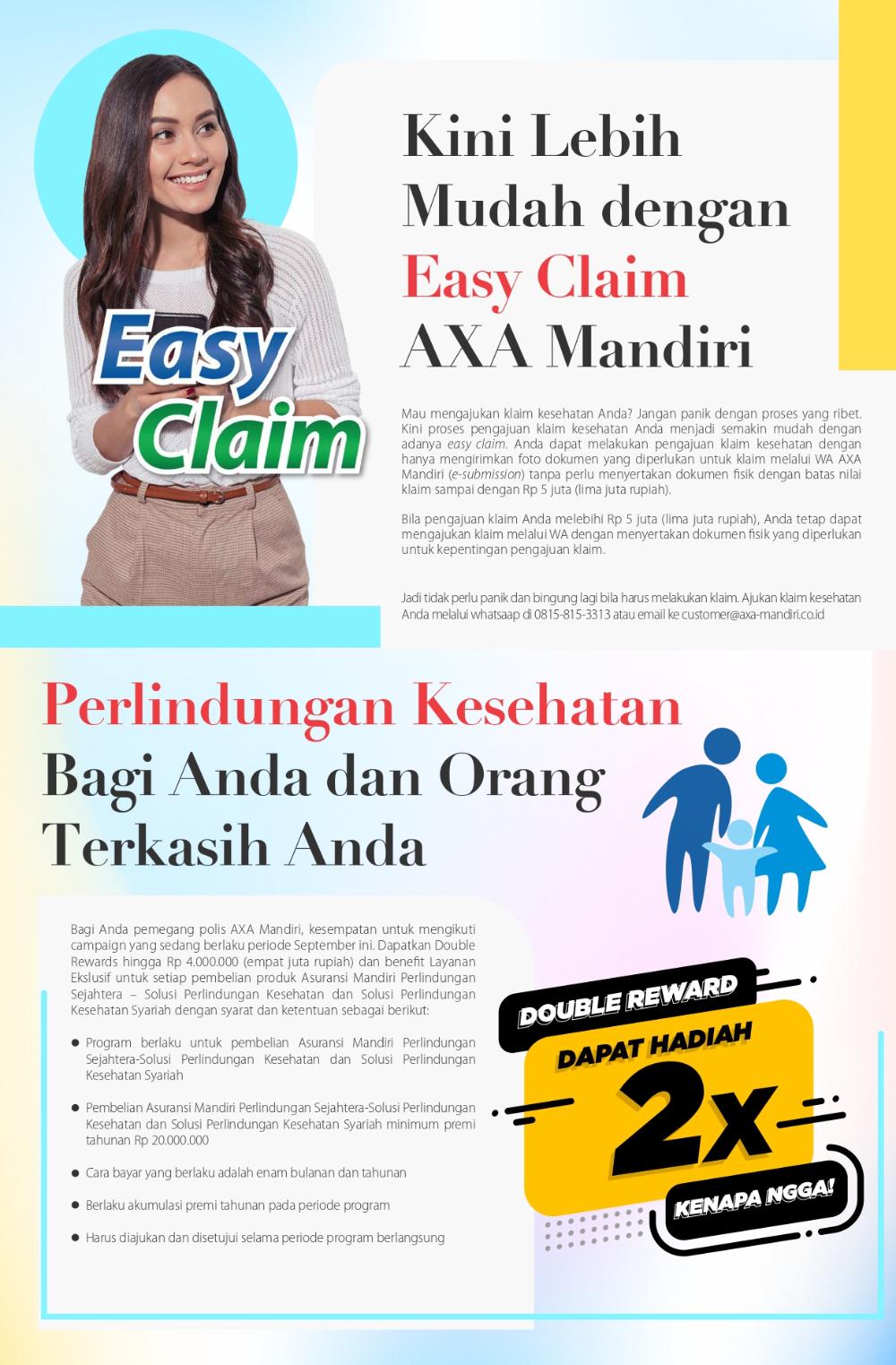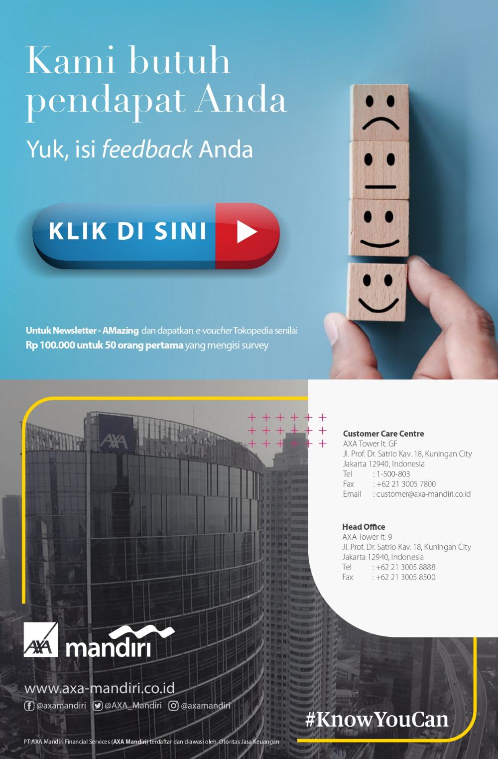 Selamat datang di Customer Care Corner AXA Mandiri. Kami siap membantu memberikan pelayanan menyeluruh bagi Anda dengan memberikan penjelasan komprehensif mengenai produk dan manfaatnya, juga mengenai polis, pembayaran premi, klaim, perubahan polis, dan lain-lain.